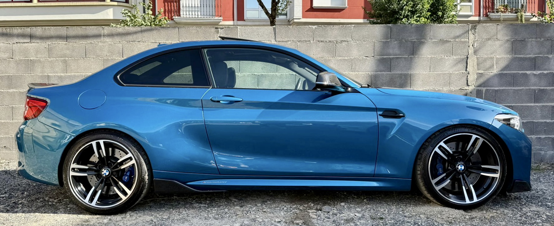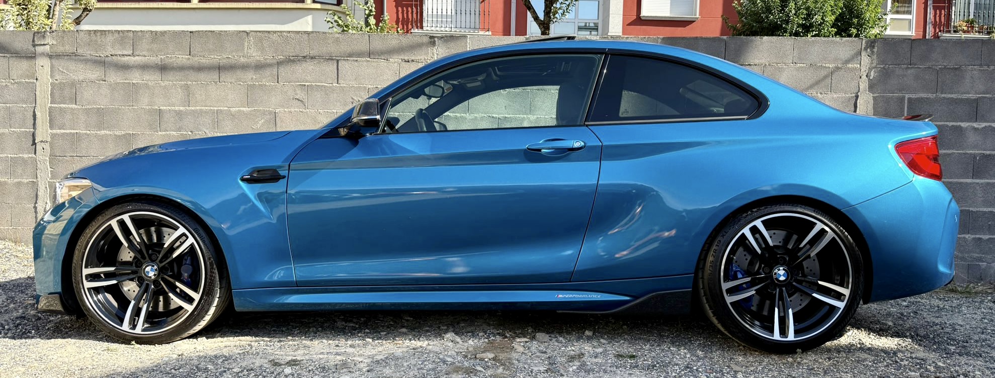 Automático con levas en el volante, cierre centralizado, espejos eléctricos abatibles fotocromáticos, elevalunas eléctricos, climatizador bizona, modos de conducción, ordenador de abordo, manoslibres, entrada AUX-IN, CarPlay, control de velocidad, navegador en color, asientos de cuero calefactables, sensores de aparcamiento con cámara de visión trasera, techo solar, Head UP display, ISOFIX, faros LED, faros antiniebla, llantas de aluminio, lips de carbono, alerón de carbono, escape Akrapovic homologado…