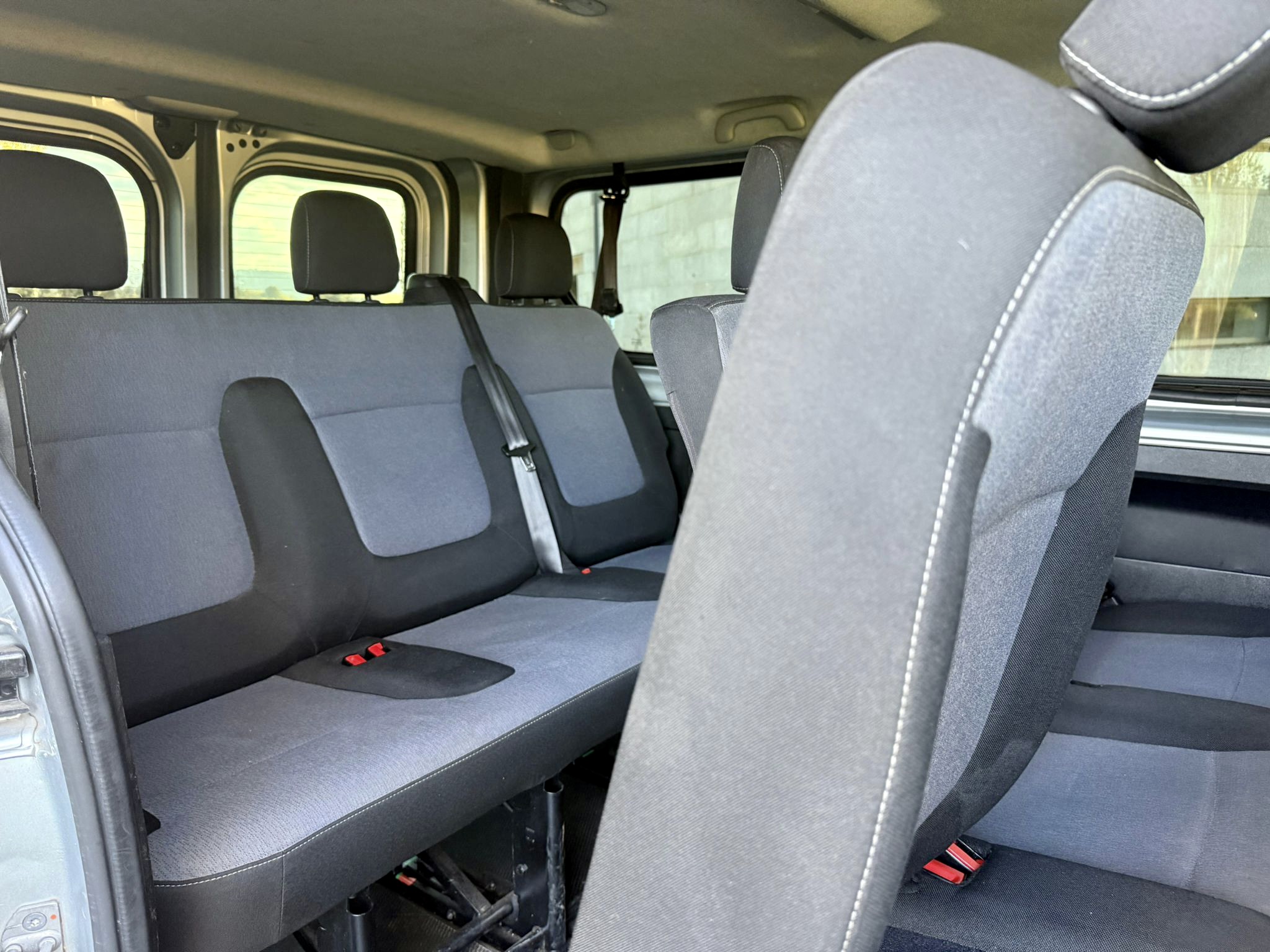 9 plazas, elevalunas eléctricos, espejos eléctricos, cierre centralizado, aire acondicionado, ordenador de abordo, manoslibres, control de velocidad, ISOFIX, sensores de aparcamiento con cámara de visión trasera, cristales tintados, faros antiniebla, gancho de remolque, puerta lateral…